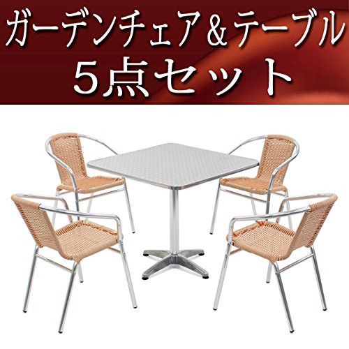 ガーデン5点セット ガーデンテーブル5点セット ガーデンテーブルセット 人工ラタン アルミチェア ダイニングチェア リゾートチェア ロビーチェア ガーデンチェア スタッキングチェア ビーチチェア スタッキング アウトドア ラタン (人工) オレンジ 白 L24WO L63 W80スクエア