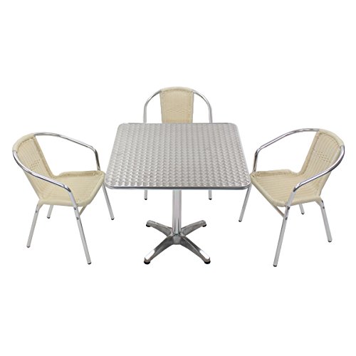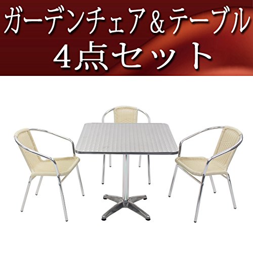 ガーデン4点セット ガーデンテーブル4点セット ガーデンテーブルセット 人工ラタン アルミチェア ダイニングチェア ロビーチェア ガーデンチェア スタッキングチェア ビーチチェア スタッキング アウトドア ラタン (人工) ホワイト L24WH L63 W80スクエア