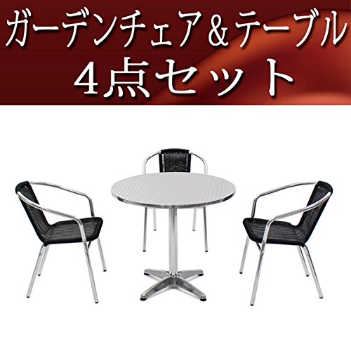 ガーデン4点セット ガーデンテーブル4点セット ガーデンテーブルセット 人工ラタン アルミチェア ダイニングチェア ロビーチェア ガーデンチェア スタッキングチェア ビーチチェア スタッキング アウトドア リゾート ラタン (人工) ブラック L24BK L61 W80