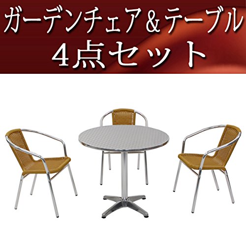 ガーデン4点セット ガーデンテーブル4点セット ガーデンテーブルセット 人工ラタン アルミチェア ダイニングチェア ロビーチェア ガーデンチェア スタッキングチェア ビーチチェア スタッキング アウトドア リゾート ラタン (人工) ベージュ L24BE L61 W80