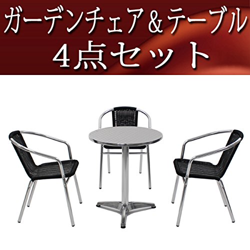 ガーデン4点セット ガーデンテーブル4点セット ガーデンテーブルセット 人工ラタン アルミチェア ダイニングチェア ロビーチェア ガーデンチェア スタッキングチェア ビーチチェア スタッキング アウトドア リゾート ラタン (人工) ブラック L24BK L59 W60