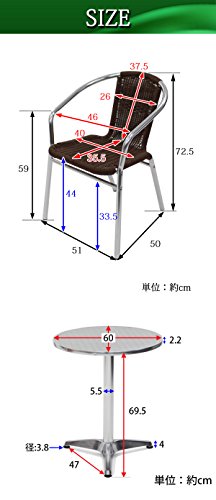 - 材質(チェア):アルミ(フレーム)、人工ラタン(ポリエチレン)