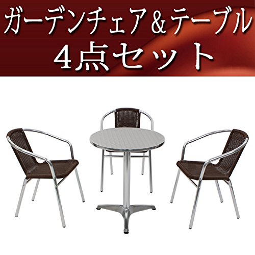 ガーデン4点セット ガーデンテーブル4点セット ガーデンテーブルセット 人工ラタン アルミチェア ダイニングチェア ロビーチェア ガーデンチェア スタッキングチェア ビーチチェア スタッキング アウトドア リゾート ラタン (人工) 茶 ブラウン L24BRL59 W60