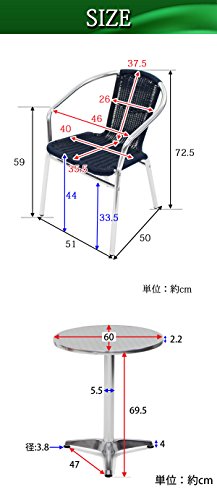 - 材質(チェア):アルミ(フレーム)、人工ラタン(ポリエチレン)
