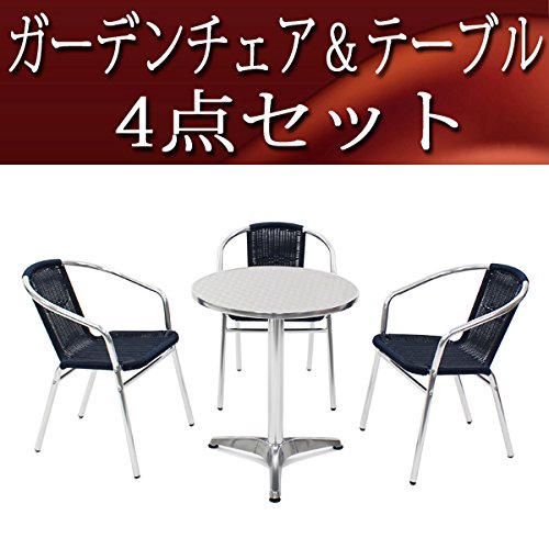 ガーデン4点セット ガーデンテーブル4点セット ガーデンテーブルセット 人工ラタン アルミチェア ダイニングチェア ロビーチェア ガーデンチェア スタッキングチェア ビーチチェア スタッキング アウトドア リゾート ラタン (人工) ダークブルー L24DABL L59 W60