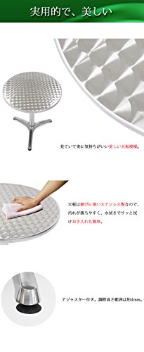 ●錆びに強いステンレス製の天板。軽量なアルミ製の支柱と脚。錆びに強く、お手入れ簡単で、女性でもラクラク運搬可能。