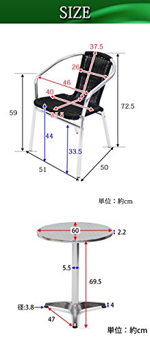 ガーデン3点セット ガーデンテーブル3点セット ガーデンテーブルセット 人工ラタン アルミチェア ダイニングチェア ロビーチェア ガーデンチェア スタッキングチェア ビーチチェア スタッキング アウトドア リゾート ラタン (人工) ブラック L24BK L59 W60