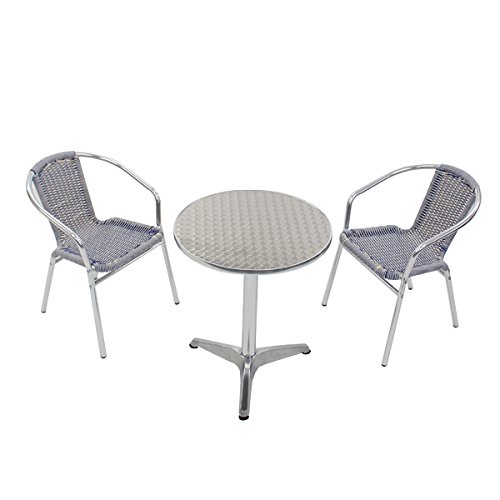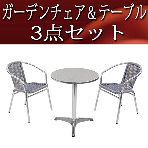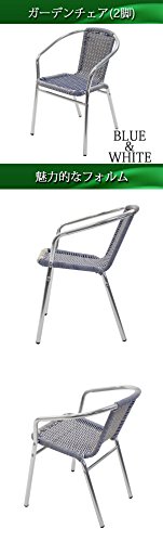 ガーデン3点セット ガーデンテーブル3点セット ガーデンテーブルセット 人工ラタン アルミチェア ダイニングチェア ロビーチェア ガーデンチェア スタッキングチェア ビーチチェア スタッキング アウトドア ラタン (人工) 青 白 ブルー&ホワイト L24W-B L59 W60