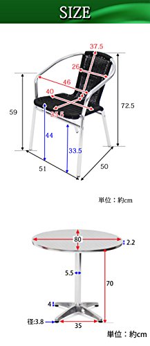 - 材質(チェア):アルミ(フレーム)、人工ラタン(ポリエチレン)