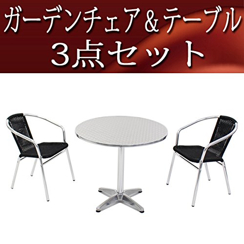 ガーデン3点セット ガーデンテーブル3点セット ガーデンテーブルセット 人工ラタン アルミチェア ダイニングチェア ロビーチェア ガーデンチェア スタッキングチェア ビーチチェア スタッキング アウトドア リゾート ラタン (人工) ブラック L24BK L61 W80