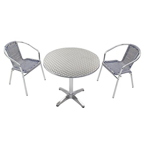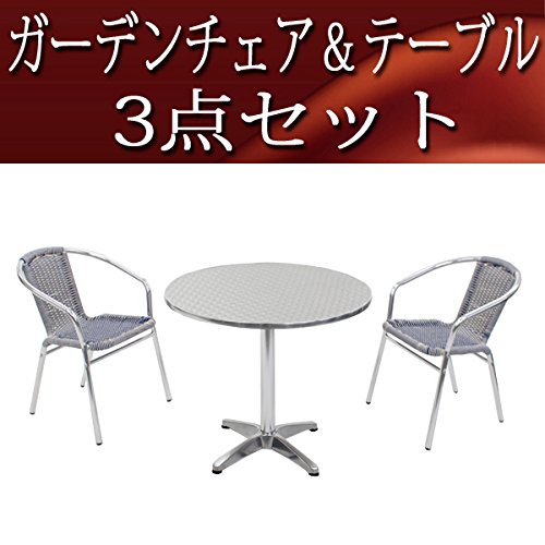 ガーデン3点セット ガーデンテーブル3点セット ガーデンテーブルセット 人工ラタン アルミチェア ダイニングチェア ロビーチェア ガーデンチェア スタッキングチェア ビーチチェア スタッキング アウトドア ラタン (人工) 青 白 ブルー&ホワイト L24W-B L61 W80