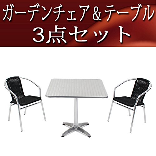 ガーデン3点セット ガーデンテーブル3点セット ガーデンテーブルセット 人工ラタン アルミチェア ダイニングチェア ロビーチェア ガーデンチェア スタッキングチェア ビーチチェア スタッキング アウトドア ラタン (人工) ブラック L24BK L63 W80スクエア
