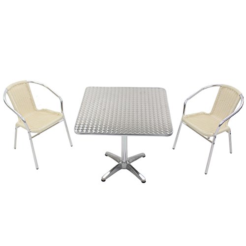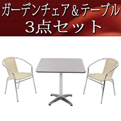 ガーデン3点セット ガーデンテーブル3点セット ガーデンテーブルセット 人工ラタン アルミチェア ダイニングチェア ロビーチェア ガーデンチェア スタッキングチェア ビーチチェア スタッキング アウトドア ラタン (人工) ホワイト L24WH L63 W80スクエア