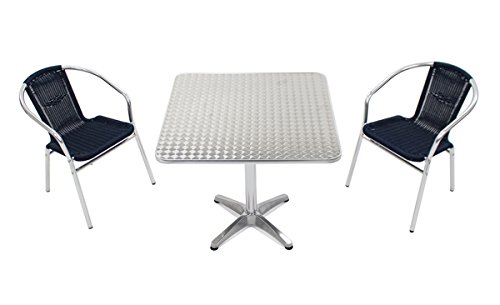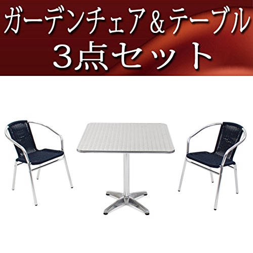 ガーデン3点セット ガーデンテーブル3点セット ガーデンテーブルセット 人工ラタン アルミチェア ロビーチェア ガーデンチェア スタッキングチェア ビーチチェア スタッキング アウトドア ラタン (人工) ダークブルー L24DABL L63 W80スクエア