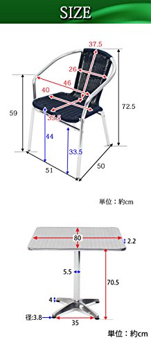 - 材質(チェア):アルミ(フレーム)、人工ラタン(ポリエチレン)