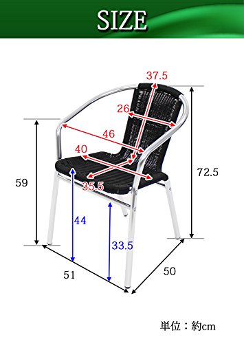 - 材質:アルミ(フレーム)、人工ラタン(ポリエチレン)