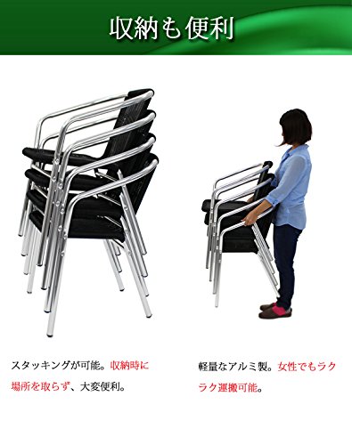 アルミチェア 1脚 人工ラタン ダイニングチェア リゾートチェア ロビーチェア ガーデンチェア ラタンチェア スタッキングチェア 会議椅子 ラウンジチェア 軽量で持ち運び簡単 ビーチチェア アルミチェア スタッキング アウトドア リゾート ラタン (人工) 黒 ブラック L24BK