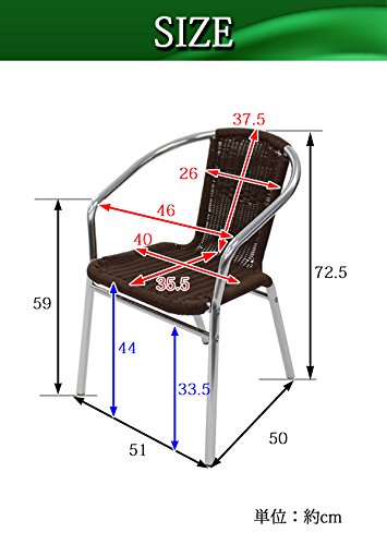- 材質:アルミ(フレーム)、人工ラタン(ポリエチレン)