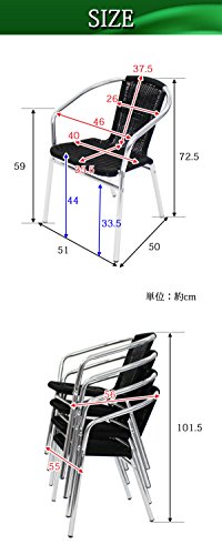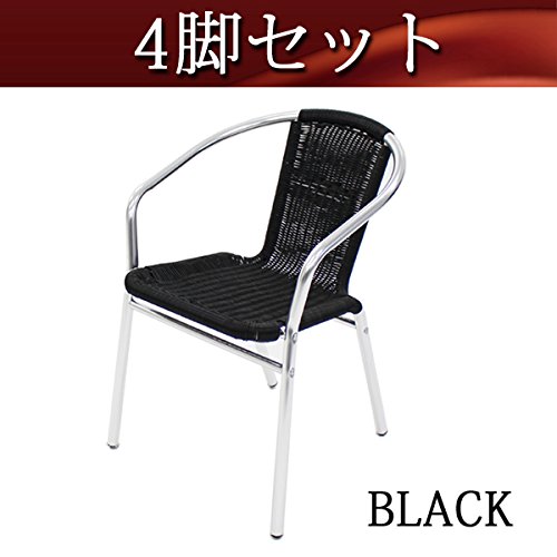 アルミチェア 4脚セット 人工ラタン ダイニングチェア リゾートチェア ロビーチェア ガーデンチェア ラタンチェア スタッキングチェア 会議椅子 ラウンジチェア 軽量で持ち運び簡単 ビーチチェア スタッキング アウトドア リゾート ラタン (人工) 黒 ブラック L24BK