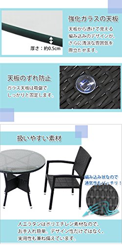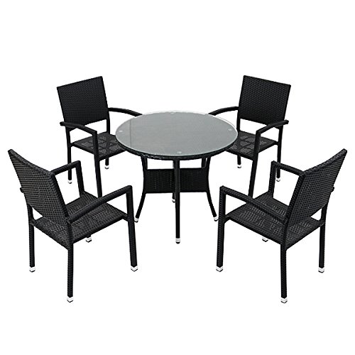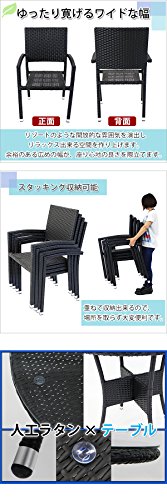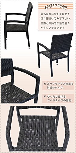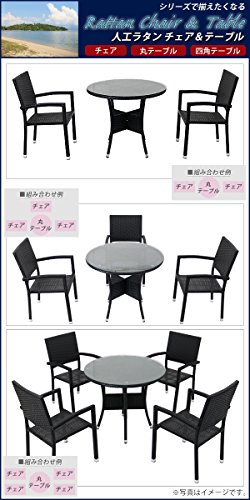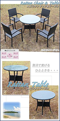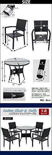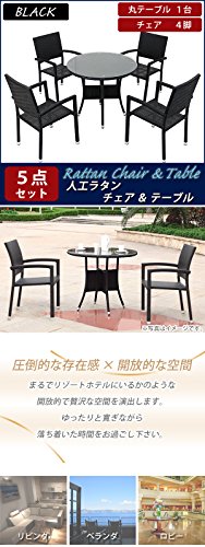 人工ラタンチェア4脚 丸テーブル1台 5点セット 強化ガラス 黒 籐 肘掛け付き 家具 ファニチャー インテリア スタッキングチェア リビング chair 椅子 南国 アジアン バリ風 リゾート ホテル ベランダ バルコニー テラス 庭 ガーデン ブラック rattan4559t5setbk