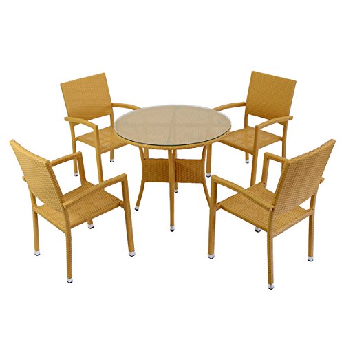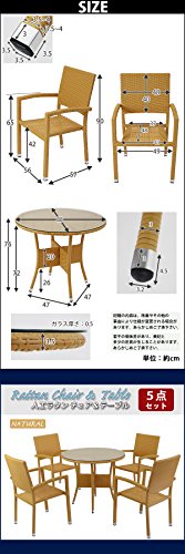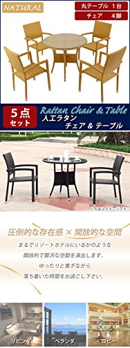 人工ラタンチェア4脚 丸テーブル1台 5点セット 強化ガラス ナチュラル 籐 肘掛け付き 家具 ファニチャー インテリア スタッキングチェア リビング chair 椅子 南国 アジアン バリ風 リゾート ホテル ベランダ バルコニー テラス 庭 ガーデン rattan4559t5setna