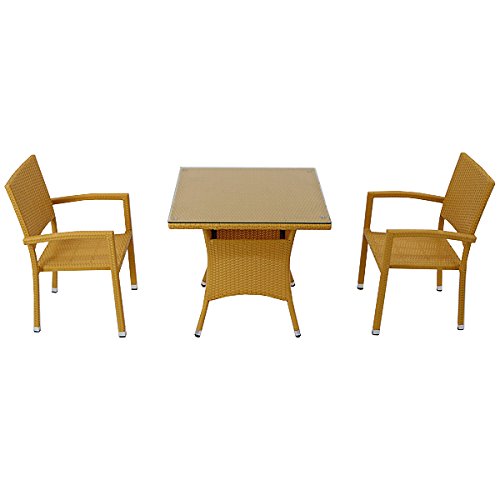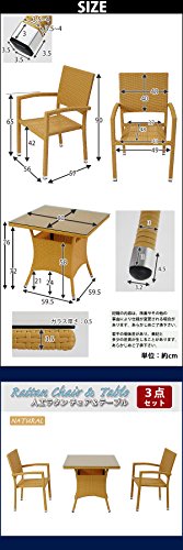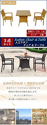 人工ラタンチェア2脚 四角テーブル1台 3点セット 強化ガラス ナチュラル 籐 肘掛け付き 家具 ファニチャー インテリア スタッキングチェア リビング chair 椅子 南国 アジアン バリ風 リゾート ホテル ベランダ バルコニー テラス 庭 ガーデン rattan4565t3setna
