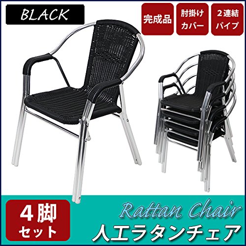 人工ラタンチェア 4脚セット ブラック 籐 肘掛けカバー付き 家具 ファニチャー インテリア おしゃれ スタッキングチェア chair 椅子 チェア 南国 アジアン バリ風 リゾート カフェ ベランダ バルコニー テラス 庭 ガーデン 黒 rattan174setbk