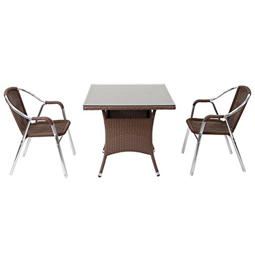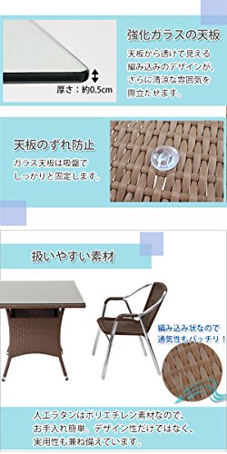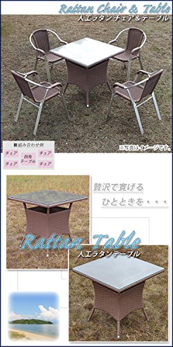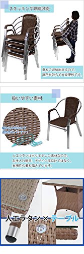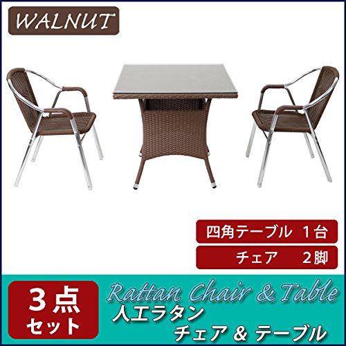 人工ラタンチェア2脚 四角テーブル1台 3点セット 強化ガラス ウォールナット 籐 肘掛けカバー付 家具 ファニチャー インテリア スタッキングチェア リビング chair 椅子 南国 アジアン バリ風 リゾート ホテル ベランダ バルコニー ガーデン rattan1765t3setwa