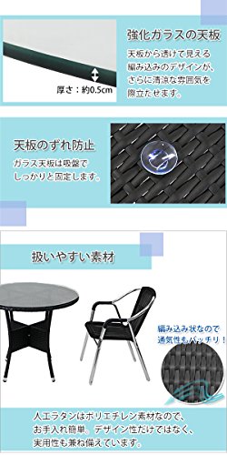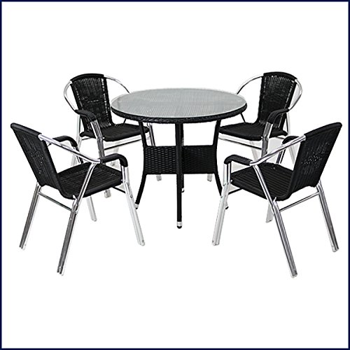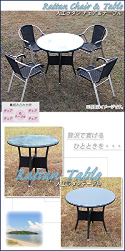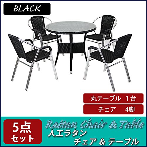 人工ラタンチェア4脚 丸テーブル1台 5点セット 強化ガラス ブラック 籐 肘掛けカバー付き 家具 ファニチャー インテリア スタッキングチェア リビング chair 椅子 南国 アジアン バリ風 リゾート ホテル ベランダ バルコニー 庭 ガーデン 黒 rattan1759t5setbk