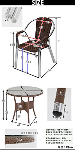 ■材質:ポリエチレン(人工ラタン)、アルミニウム(フレーム・脚)、