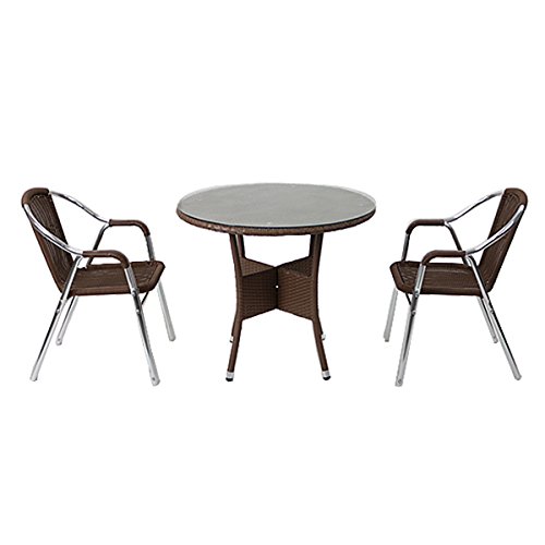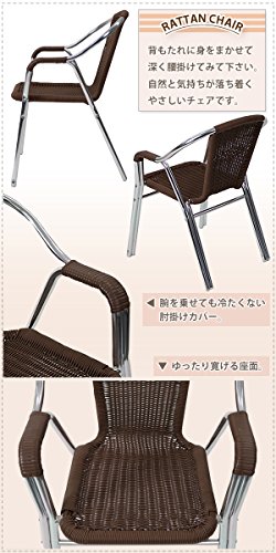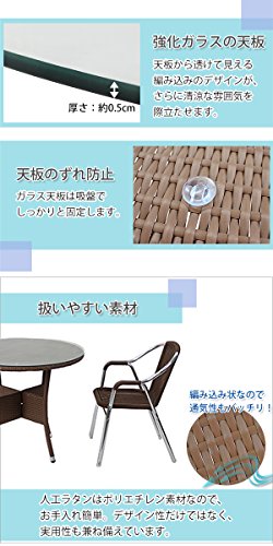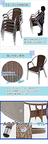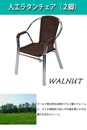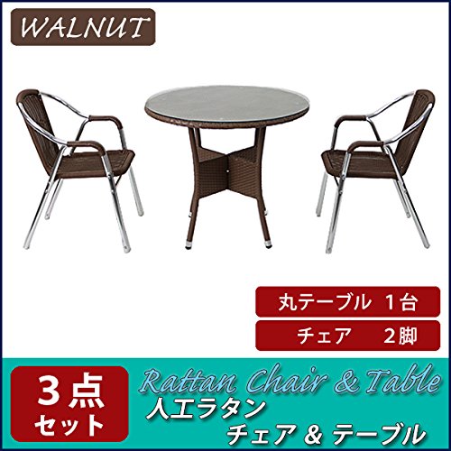 人工ラタンチェア2脚 丸テーブル1台 3点セット 強化ガラス ウォールナット 籐 肘掛けカバー付き 家具 ファニチャー インテリア スタッキングチェア リビング chair 椅子 南国 アジアン バリ風 リゾート ホテル ベランダ バルコニー 庭 rattan1759t3setwa