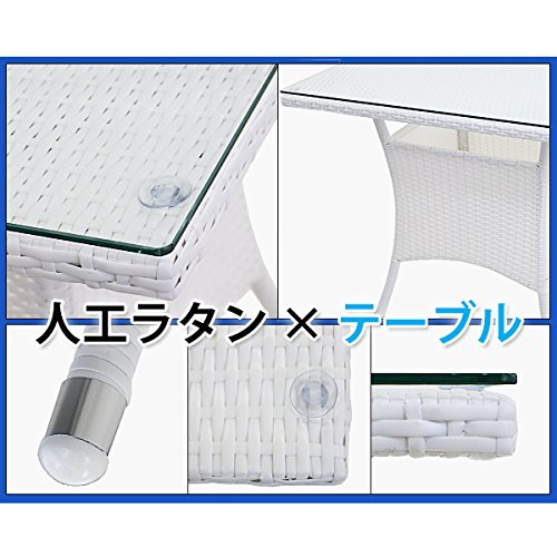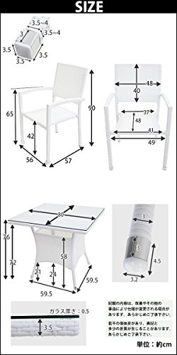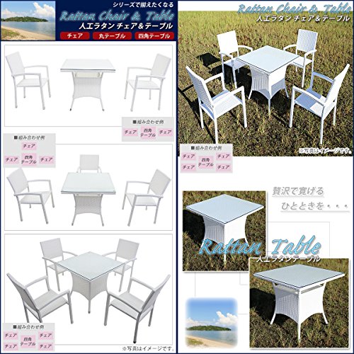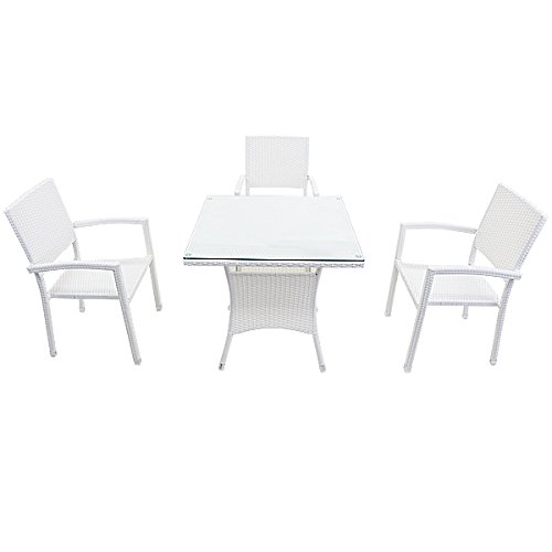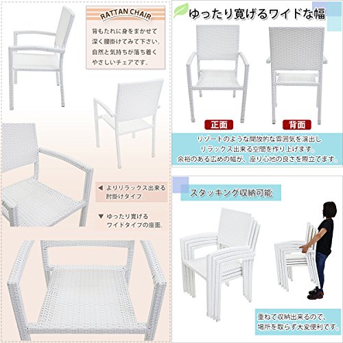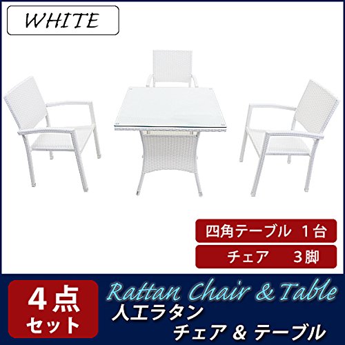 人工ラタンチェア3脚 四角テーブル1台 4点セット 強化ガラス ホワイト 籐 肘掛け付き 家具 ファニチャー インテリア スタッキングチェア リビング chair 椅子 南国 アジアン バリ風 リゾート ホテル ベランダ バルコニー 庭 ガーデン 白 rattan4565t4setwh
