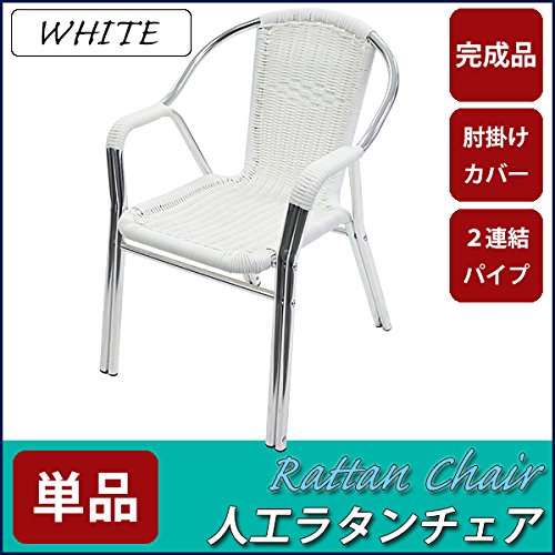 人工ラタンチェア 単品 ホワイト 籐 肘掛けカバー付き 家具 ファニチャー インテリア おしゃれ スタッキングチェア chair 椅子 チェア 南国 アジアン バリ風 リゾート カフェ ベランダ バルコニー テラス 庭 ガーデン 白 rattan17wh