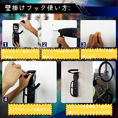 IUME 壁掛けフック 自転車用 ラックホルダー ハンガースタンド 自転車収納ツール ガレージ/小屋用 ブラック 2個入り