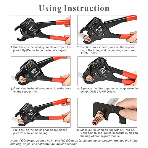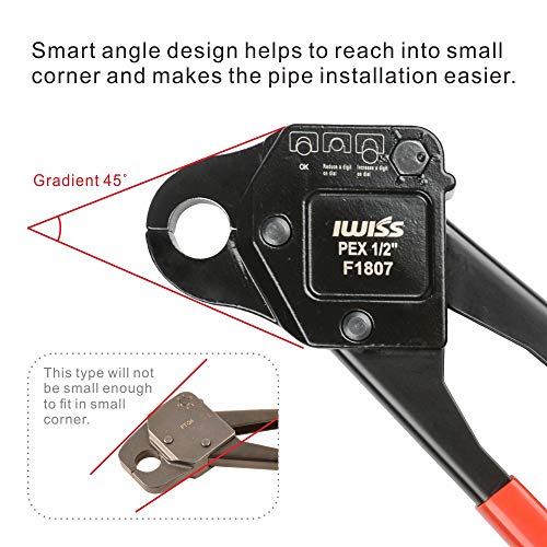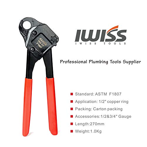 IWISS F1807 PEX 配管圧着工具 1/2インチ&3/4インチ&1インチ 銅リングクリンパーピラー GO NO GOゲージ付き 0.5 Inch iws-c-1/2