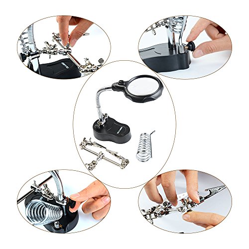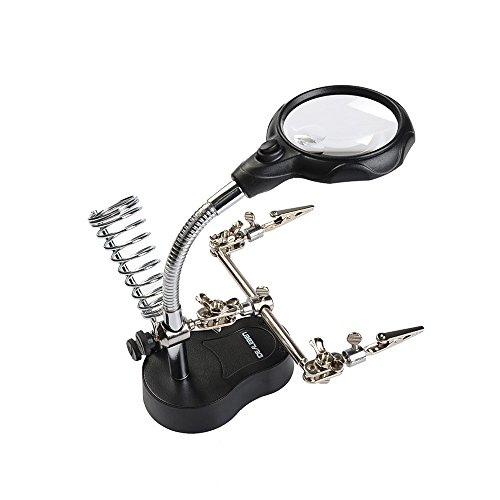 Idealeben スタンドルーペ 3.5倍・12倍 拡大鏡スタンド 精密作業用 はんだ スタンド ルーペ 拡大鏡 LEDライト/クリップ/ピンセット2個付