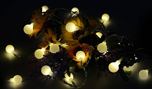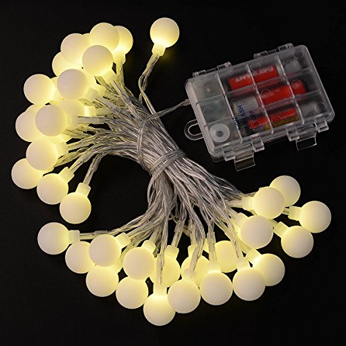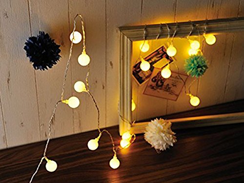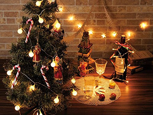 - 【商品仕様】LEDボール数:40球;ストリングライト全長:4.2m ランプビーズ距離:10 cm;電池:単3形リチウム乾電池×3個(1.5V);発光色:ウオームホワイト。