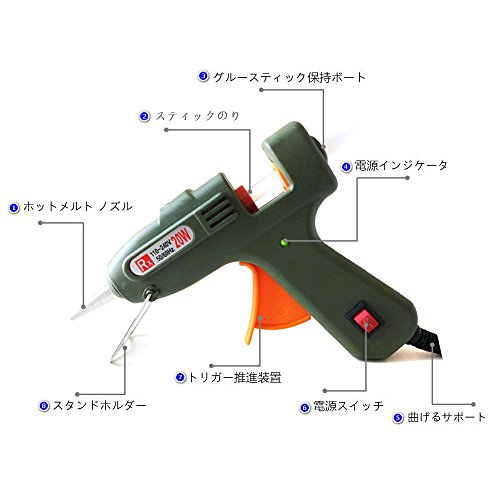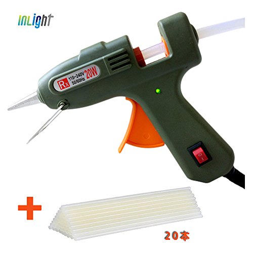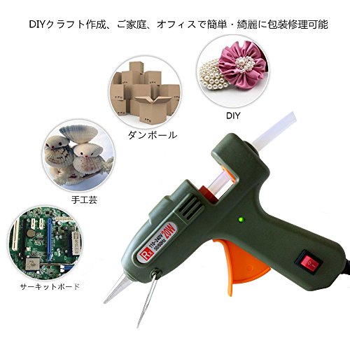 環境にやさしいです20ワット小型グルーガン 溶融グルースティック20本付き(7mm) 高温タイプ DIYのちょっとしたクラフト作成に、またご家庭やオフィス、エレクトロニクス産業で簡単・綺麗に包装や修理ができる弾力性のあるトリガ