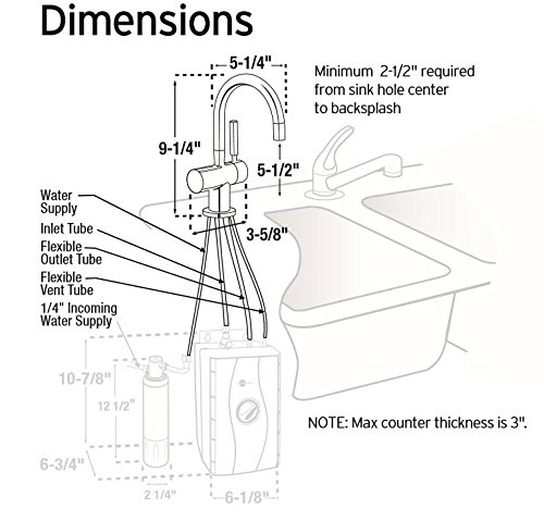 INSINKERATOR f-hc3300機能が導入されています。完全保証の対象とINSINKERATORの5年間の出張サービスall-brass蛇口ボディとハンドルの温水と冷水のアプリケーションで使用する構造腐食に強いセラミックディスクバルブプレミア仕上げプロセス – 耐腐食や変色を1回のハンドル操作high-archスパウトの設計によって、最大部屋でのためにフォーセット・スパウト360-degrees旋回を妨げるもののないアクセスが作業ステーションウォータータンク全体に満たすため、このモデルには含まれていません – ( hwt-f1000s ) Low lead compliant連邦および州の規制のリード・コンテンツのディスペンサーは、インストールに必要なすべてのハードウェアが含まINSINKERATOR f-hc3300仕様:全体の高さ: 9 – 1 / 4 "カウンターから蛇口最高のポイント吐水口高さ: 5 – 1 / 2 "カウンタを注ぎ口コンセントの注ぎ口長さ: 5 – 1 / 4 "中央の蛇口本体の中心に注ぎ口コンセントの1蛇口穴必要最大デッキ厚さ: 3 " 1ハンドル含まれてディスペンサー容量: 60 cups-per-hour hwt-f1000s – タンクとろ過システムは別売りですバリエーション: f-hc3300 – このモデル。温水と冷水f-h3300 – ホット水のみ