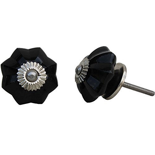 10のセット手作りガラスノブシルバーVintage Designerフラワーシェイプ家具キャビネット引き出しプルハンドル ブラック GFK-05