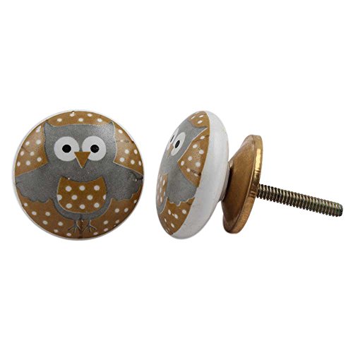 IndianShelfのセット2ハンドメイドセラミックKidsマルチカラーフクロウキャビネットノブワードローブPulls家具ハンドル 10 Knobs 1.5" CK-589-3-10