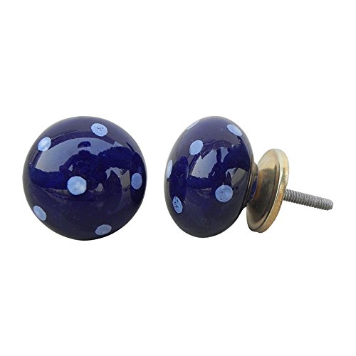 IndianShelfハンドメイドセラミック2 Pieceブラウン引き出しハンドルドレッサードアノブワードローブ 20 Knobs 1.6" ブルー DCK-80-3-20