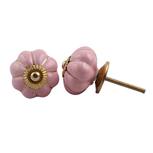 IndianShelfのセット20ハンドメイドセラミックピンクゴールドラインMediumドアノブ引き出しハンドルドレッサーPulls