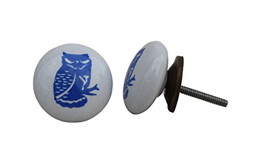 IndianShelfハンドメイドのセット2ブルーフクロウフラットセラミックキャビネットノブワードローブPulls家具ハンドル 20 Knobs 1.5" ブルー CFKP-52-3-20