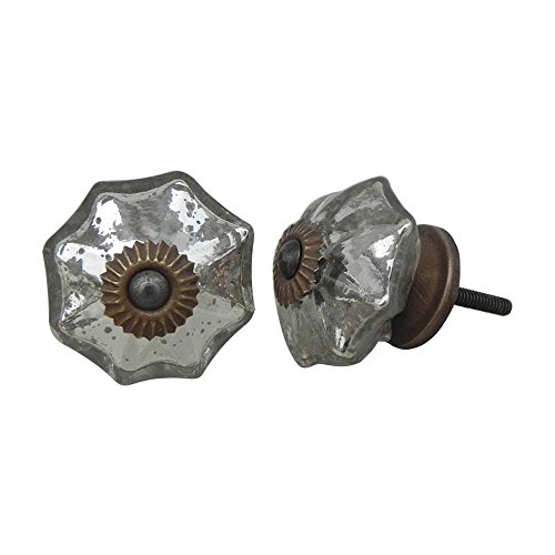 IndianShelfハンドメイドのセット2ガラスとメタルシルバーキャビネット引き出しドレッサーノブワードローブハンドル 6 Knobs 1.75" MGK-01-2-6