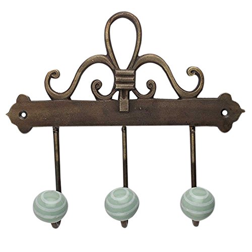 IndianShelfハンドメイドチェリーホワイトストリップセラミックアイロンフックキーキャビネットコート帽子服ホルダーオンライン 標準 グリーン