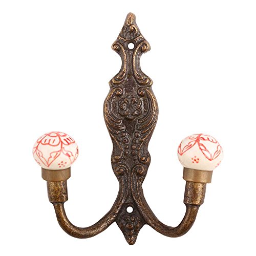 ハンドメイドブラックフローラルセラミックアイロン壁フックキーキャビネットコート帽子服ホルダーオンラインIndianShelf 標準 レッド