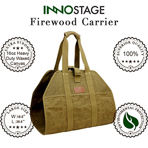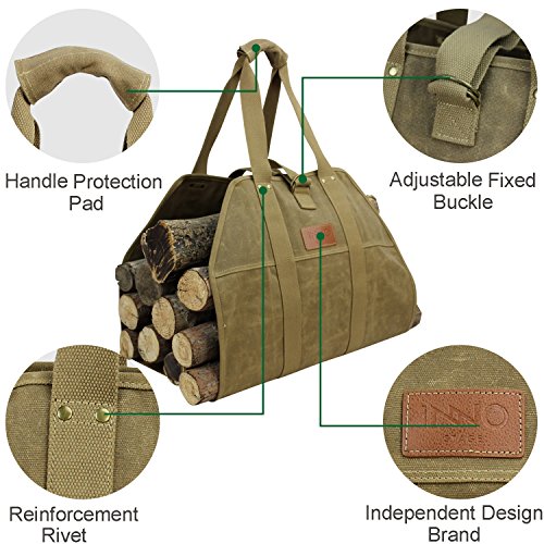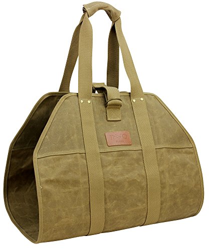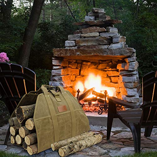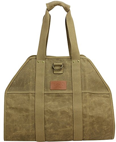 大きなログキャリアワックスキャンバスログトートバッグインドア暖炉薪TotesホルダーラウンドWoodpileラックFire木製キャリアCarryingのアウトドアTubular Birchwood Stand by Hearthストーブツールセットバスケット ベージュ PB17-162Khaki