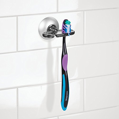 - パワーロック吸盤カップ付き歯ブラシホルダーは壁に取りつけられるデザイン。歯ブラシ2個まで収納可能