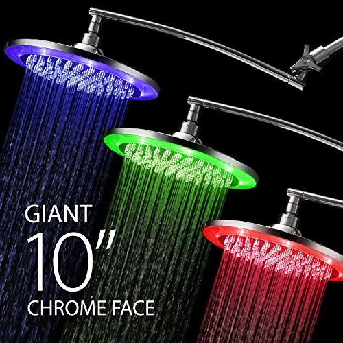 HotelSpa 10インチカラー変更降雨LEDシャワーヘッド15インチアーチ高さ調節可能な拡張子アーム。Powered by Running水。LEDライト変更色according to水温度(クローム)
